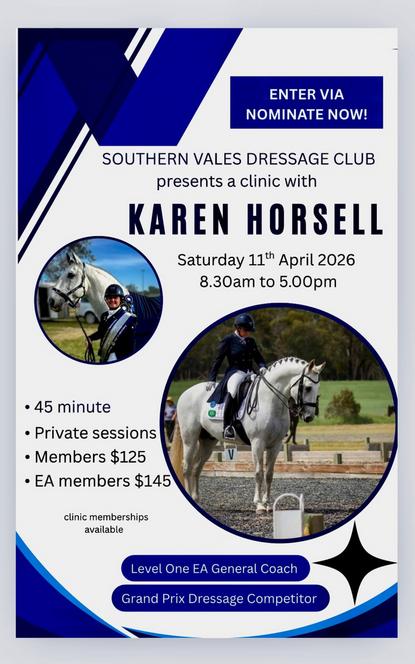 Southern Vale Dressage Club Upcoming Clinics 2026