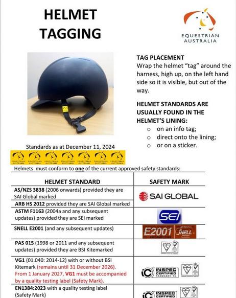 - Helmets are to be worn at all times when riding on the grounds including warm-up. Helmets must be approved (SEE BOTTOM OF PAGE FOR APPROVED HELMETS CHART)